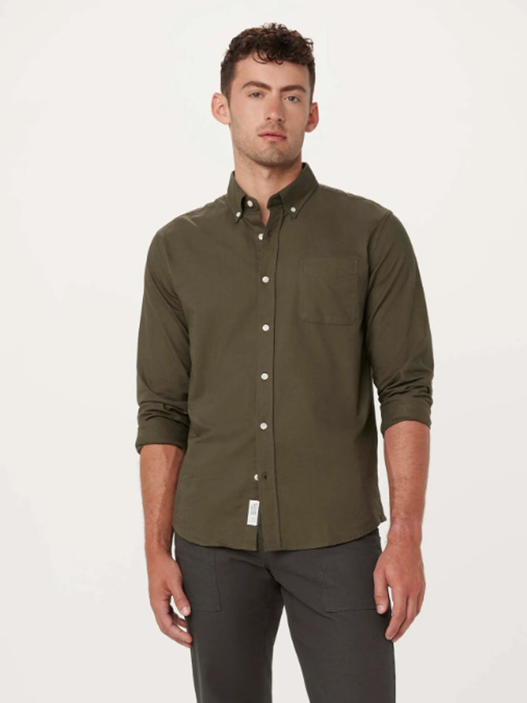 A wardrobe must-have. The Jasper shirt is made from Oxford cloth, a basket-weave fabric that is soft, sturdy, and breathable. 100% organic cotton. Regular fit. Buttoned point collar. Patch pocket at the chest. Recycled buttons.
