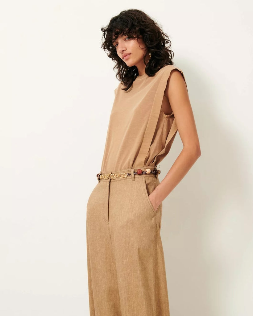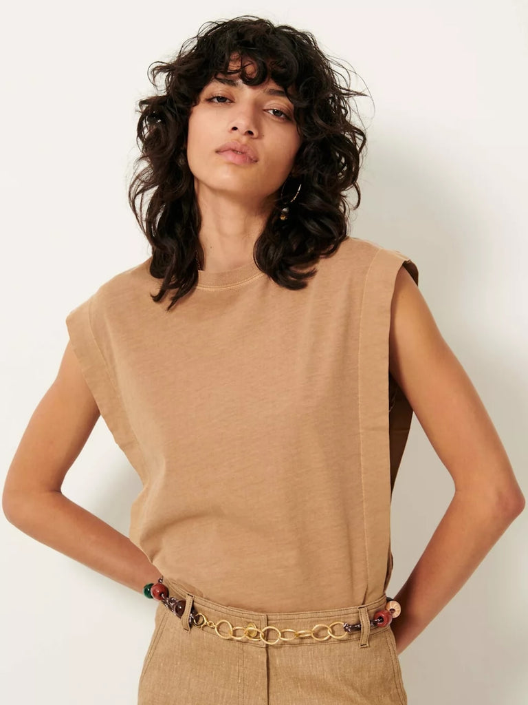 Sleeveless T-shirt with pleat details in pigment-dyed jersey knit fabric, made and dyed in Portugal using traditional techniques.