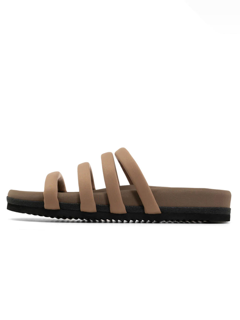 The ‘Quattro’ slip-on footbed sandals by ROAM are made from foam filled sleek neoprene straps placed across the foot in parallel lines, striking balance between functionality and an elevated sports luxe feel. Soft and flexible, they slip on with ease and gently hug the foot for a secure fit.