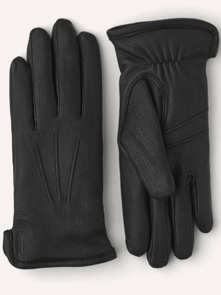A soft and warm women’s glove in classic style. A wonderful autumn and winter glove sewn in deerskin, a supple, insulating leather with a beautiful grain. It has decorative stitching on the backhand while a slit makes it easier to pull on. A thin, knitted wool lining keeps hands warm on chilly winter days.