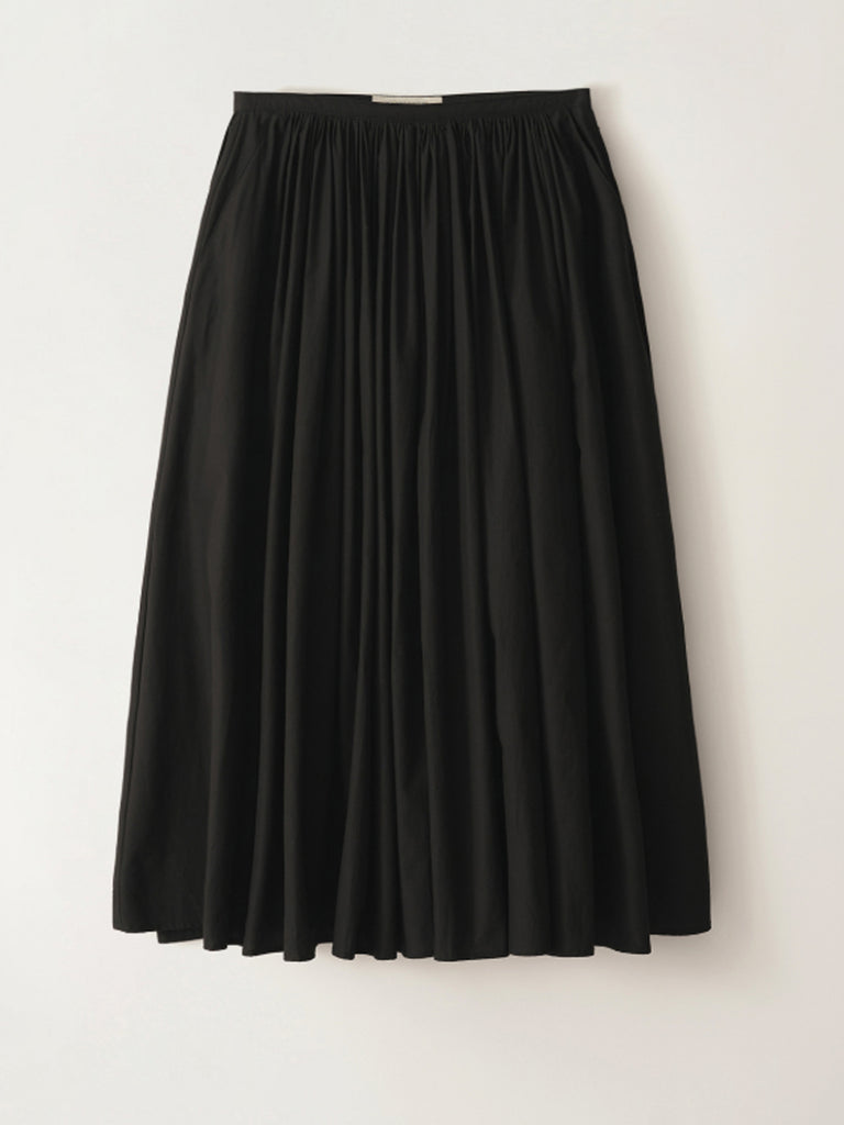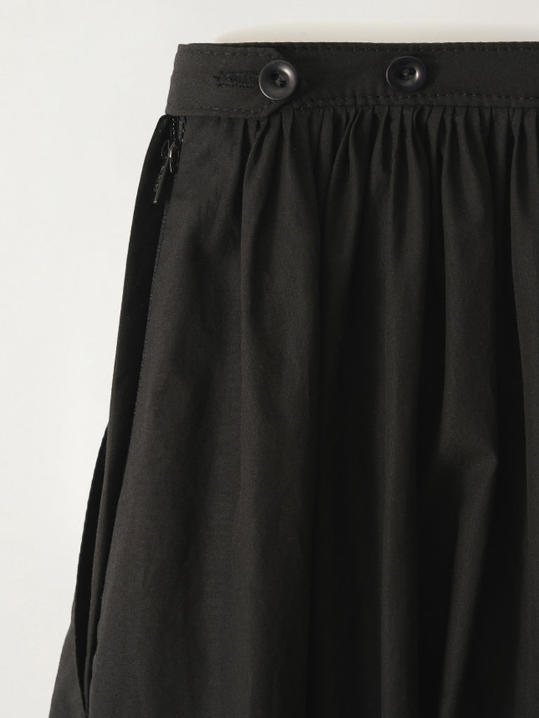 This easy flared skirt is both active and elegant. Three small nut buttons allow for a comfortable and secure fit, while the durable 100% cotton fabric is naturally breathable and soft to the touch. The slash pockets on both sides add practicality. It can be worn all seasons and can be paired with a casual T-shirt for an everyday look.