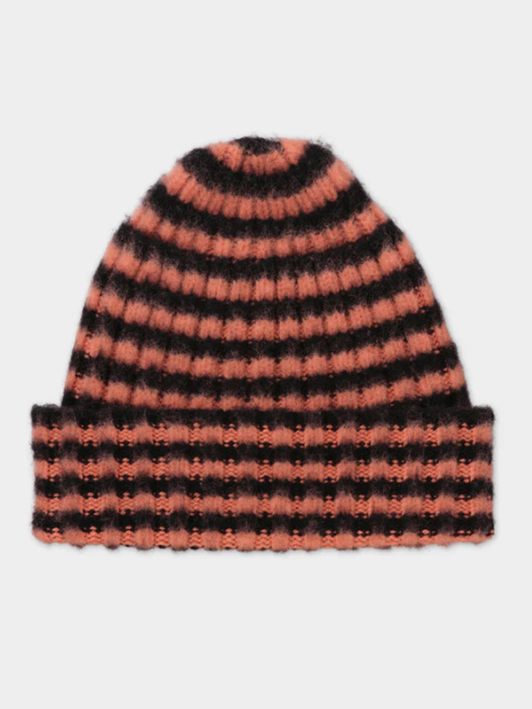 Brushed, ribbed hat with contrasting pompom. Made from the softest lambswool.
