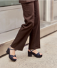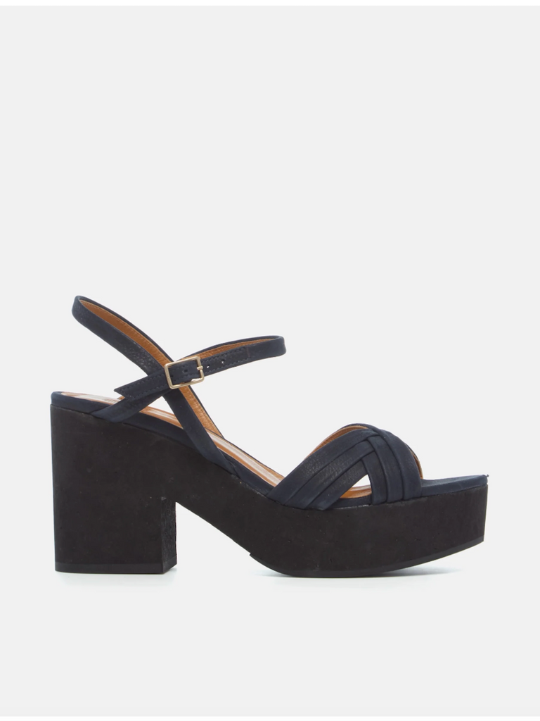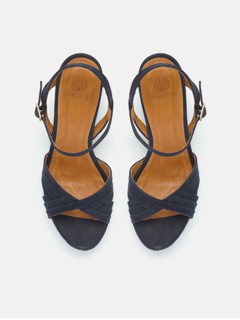 The Bee Sandal in navy suede brings warmth and character to its retro-inspired silhouette. With crisscross straps that hug the foot and a slim adjustable ankle strap, it offers a secure, comfortable fit. Its lightweight cork platform provides a wearable heel height for easy, elevated walking. The navy hue paired with the black cork injects a modern edge to this timeless design.