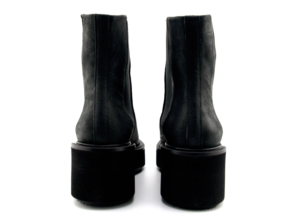 The Engel Boot delivers subtle volume and edge. Set on a bold platform sole, this black leather ankle boot offers grounded height and comfort in equal measure. The "black disco leather" adds a vintage patina to the minimalist silhouette giving it some edge. Built with an airy EVA sole and TPU shadow tread, it’s surprisingly lightweight for its stature. Fits true to size.