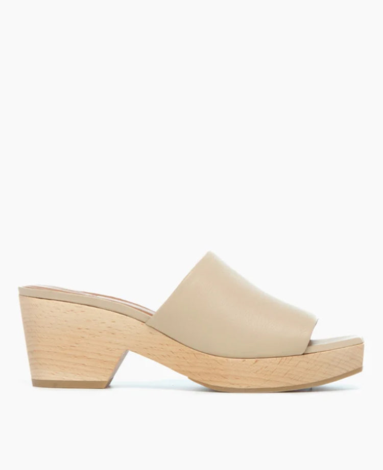 The Mist Clog makes a confident debut in Latte Macchiato leather, bringing a fresh perspective to signature minimalism. Mist upholds the tradition of thoughtful, detail-oriented design. Its wide leather band offers an understated yet striking silhouette, paired with an angular squared-off toe. Set on a solid ash wood base, it delivers both stability and a natural lift. Perfect for warm days and casual elegance, the Mist Clog Slide brings an air of effortless cool to any look.