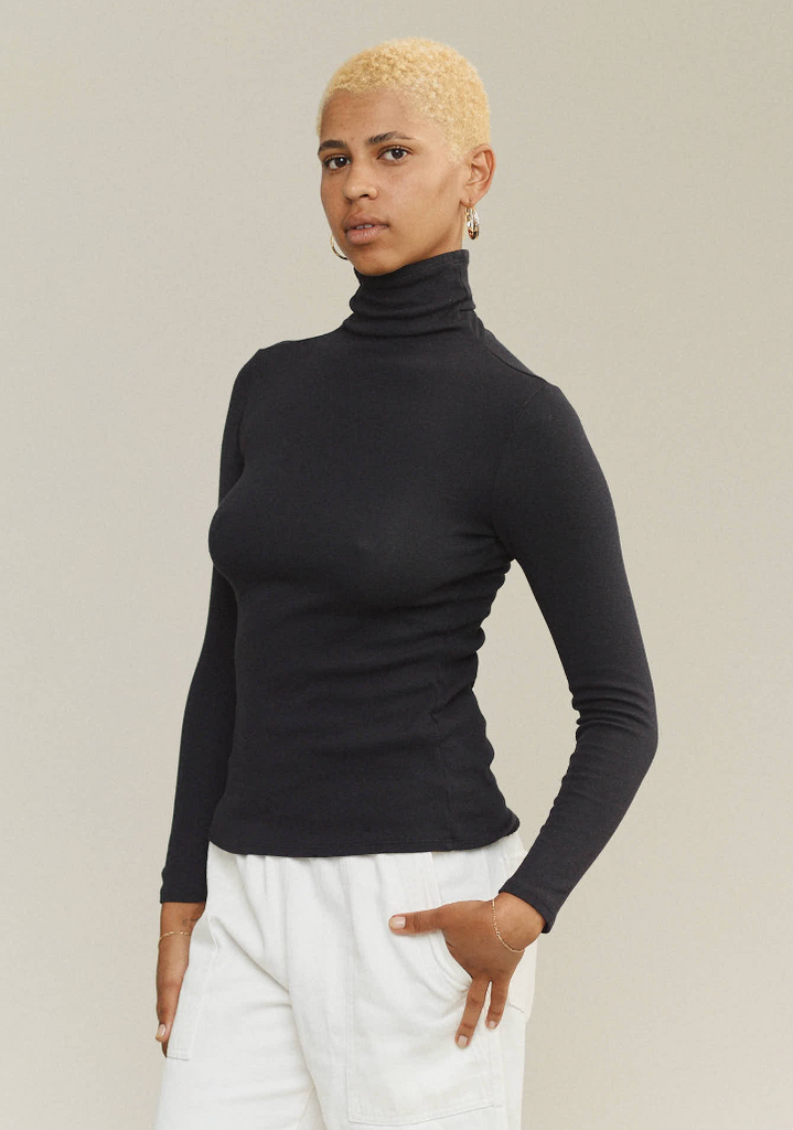 An iconic turtleneck silhouette reimagined in an earth-friendly hemp blend. A classic that never goes out of style in a velvety, breathable baby rib fabric with a touch of stretch. Perfect for layering or to wear on it’s own. Garment dyed. 29% Hemp, 66% Organic Cotton, 5% Spandex. Made in California.