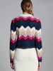 The Nova Sweater is a road-map to the collection’s color palette, expressed through an emotional and eye-catching chevron stripe pattern in a super-soft alpaca-blend yarn. Designed with a feminine slim-fit body and sleeves, and a comfortably cropped silhouette, it pairs effortlessly with high-waisted pants—striking the perfect balance between refined and relaxed.