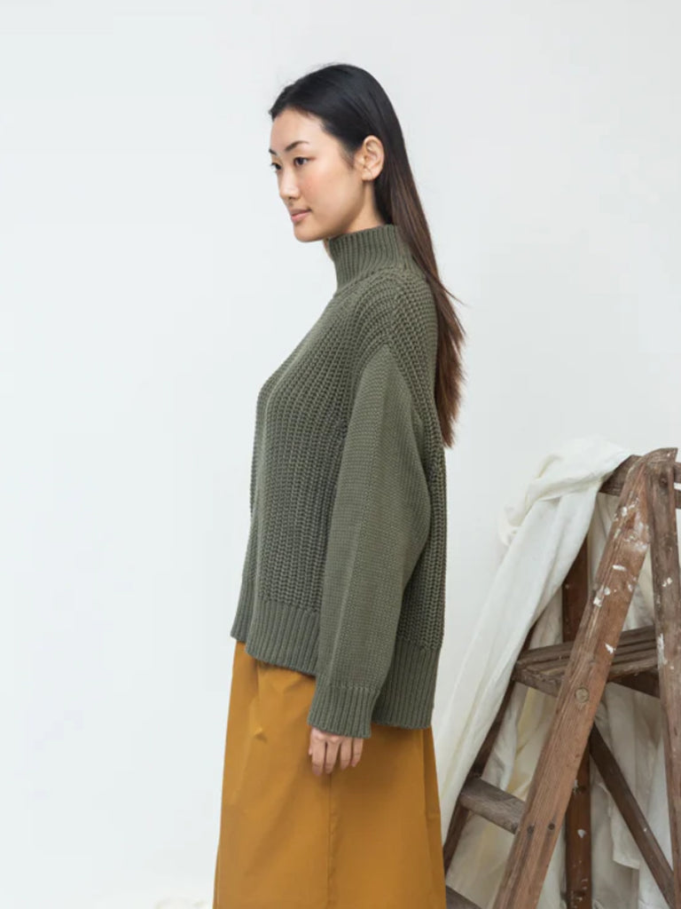 The Tora jumper is a loose fit; comfortable style made from ribbed organic cotton featuring a funnel neck.