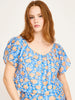 - Block-printed top that can be worn on or off the shoulder