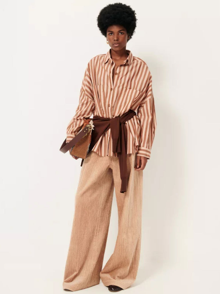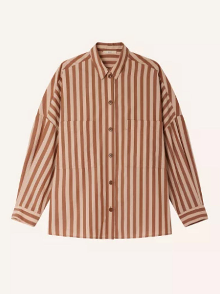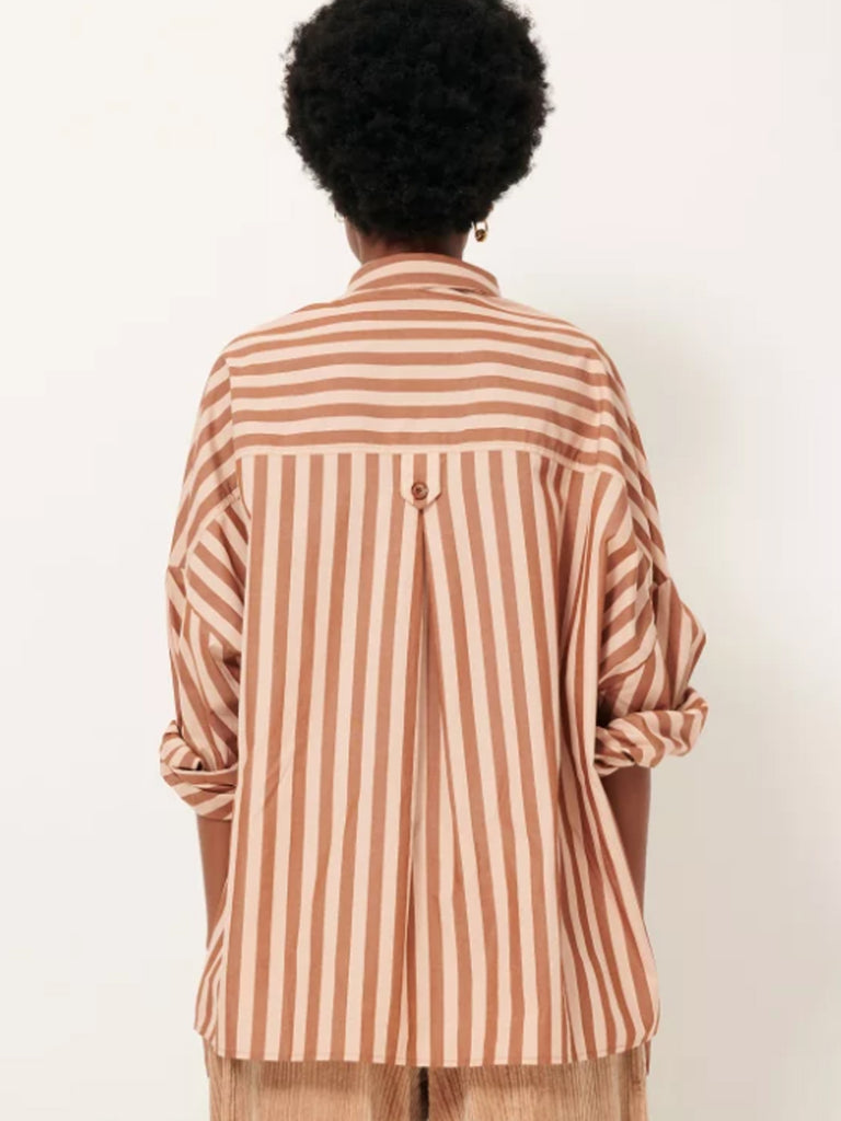 Oversized shirt with patch pockets in compact cotton poplin with two-tone stripes, woven in Italy, exclusive to Sessùn.