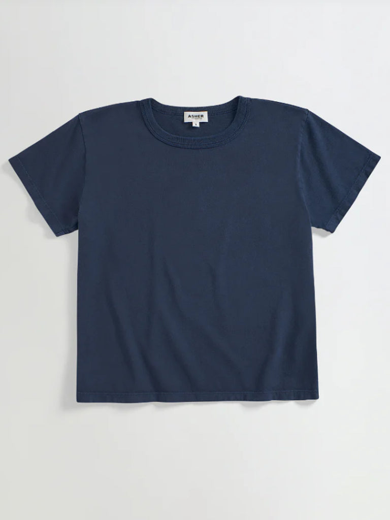The Marielle Tee offers a classic, enduring fit with a slightly boxy silhouette. Crafted from Japanese Supima Jersey, its tightly woven construction gives it a structured finish, ensuring it retains its shape—polished, refined, and made to last.