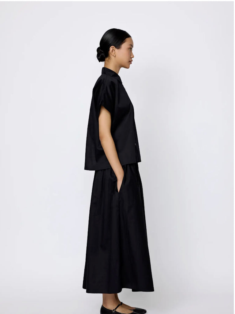 An effortlessly chic Midi Length Skirt, crafted from premium organic cotton poplin with a luxurious washed finish. Designed for everyday ease, this skirt combines comfort with elegance. Its soft elasticated waist with subtle gathers ensures a flattering fit, while the convenient inseam pockets at the hip add practicality. Pair it seamlessly with the Relaxed Short Sleeve Shirt to complete your ensemble with laid-back sophistication.