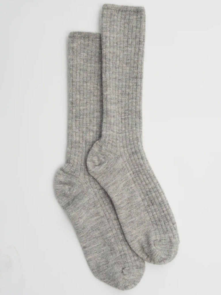Ali is an easy, pull-on-and-go essential staple rib-sock to complete your Fall look. Knit in a refined flat, rib-stitch in the softest air spun alpaca-blend combined with elastane for good rib recovery, Ali can be styled in an elevated-dressy way slouched with a heel or in relaxed-lounge mood with a slide or with a casual boot.