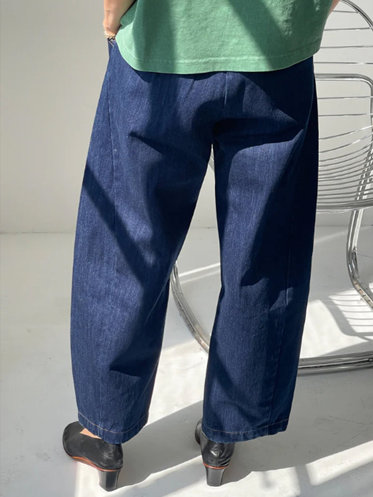 The perfect everyday pants made easy to style that transcend seasons. Thoughtfully designed with details like a slightly curved and cropped leg, unique side panels, and deep pockets. An elasticated, high waist that allows for effortless movement and accessibility. The heavy-weight denim material adds durability and gives a structured look.