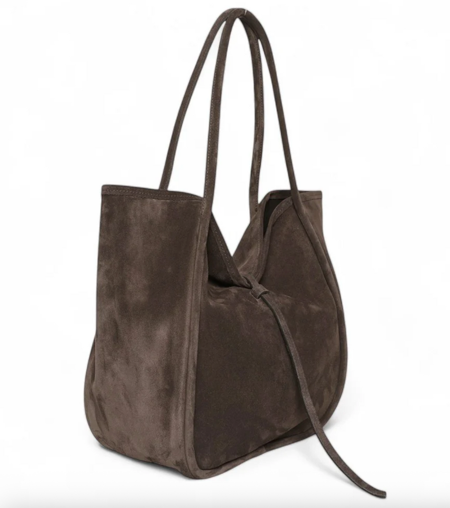 This lightweight tote is made from Ganache Italian Leather Backed Suede.