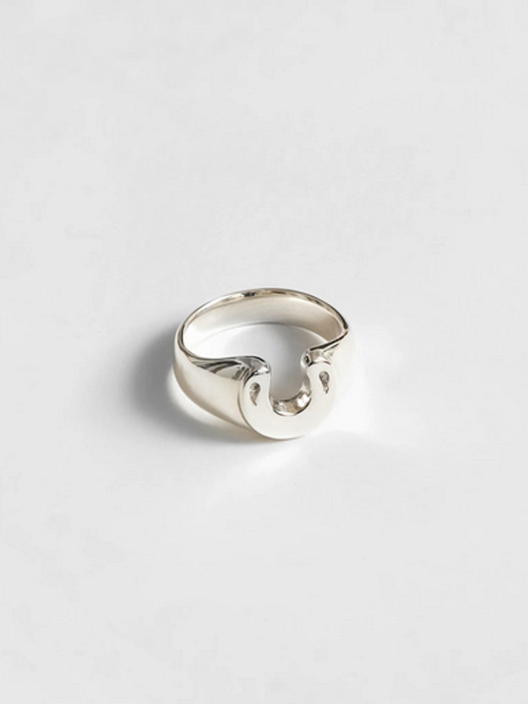 925 sterling silver horseshoe shaped signet. Face measures 12mm x 13mm. Made with recycled metals. Available in sizes 5 - 12.