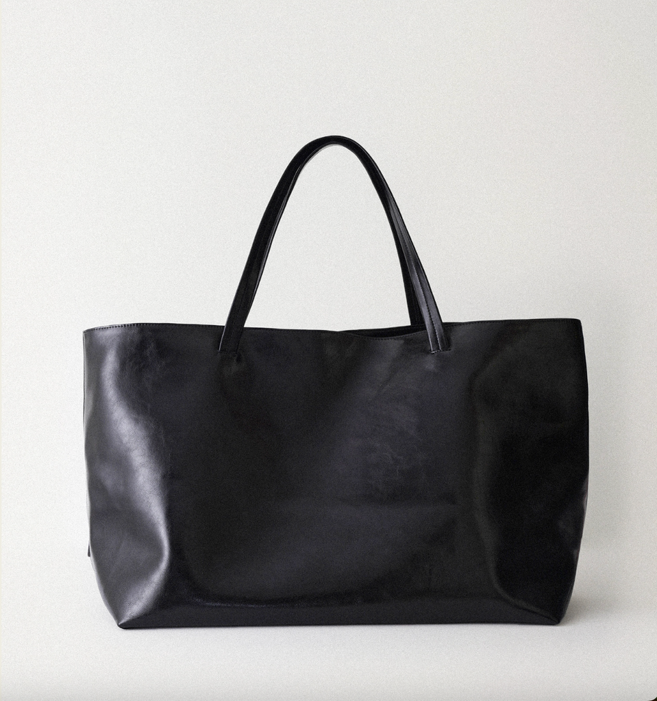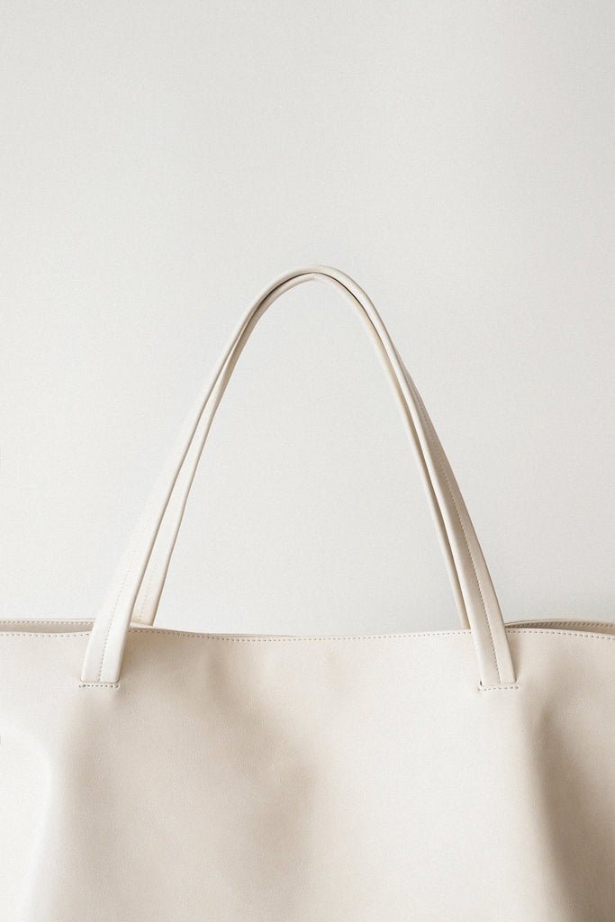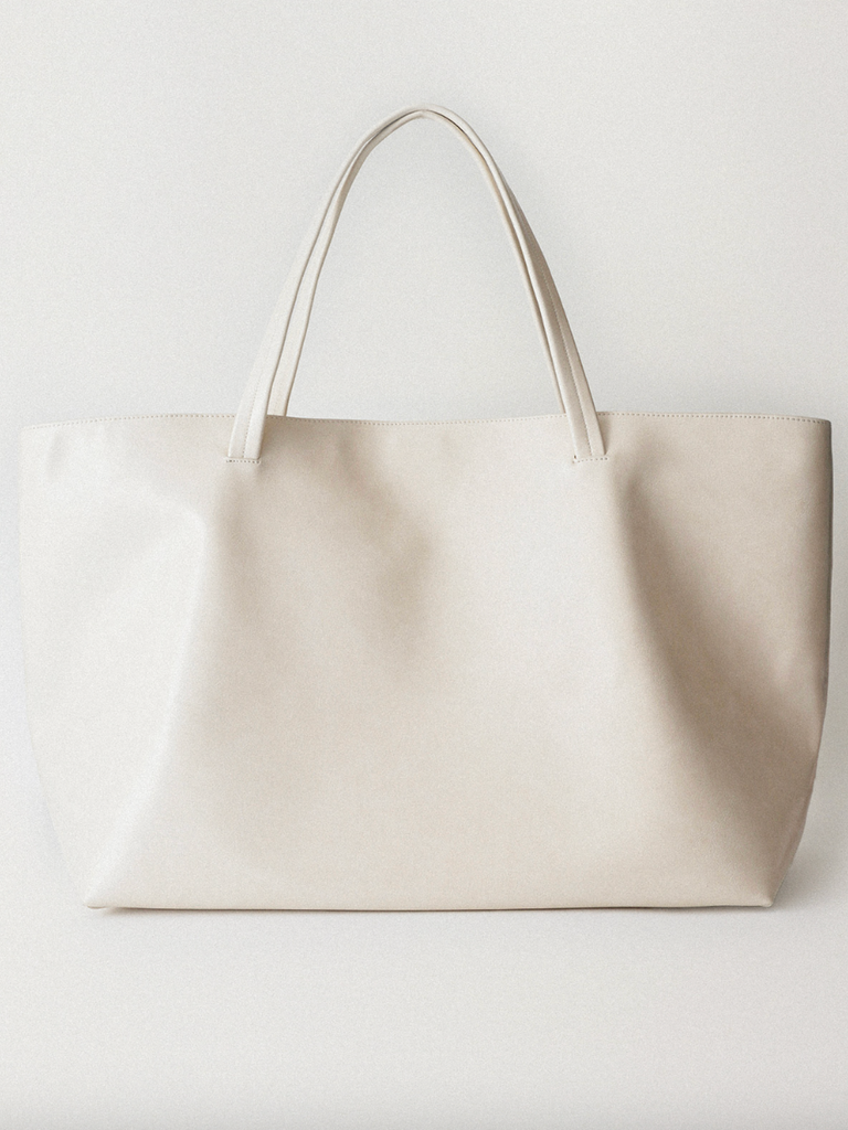 This is a large tote bag with minimalist design. Features a magnet-attached closure and comfortable shoulder. Great size that offers ample storage Features two interior pockets.