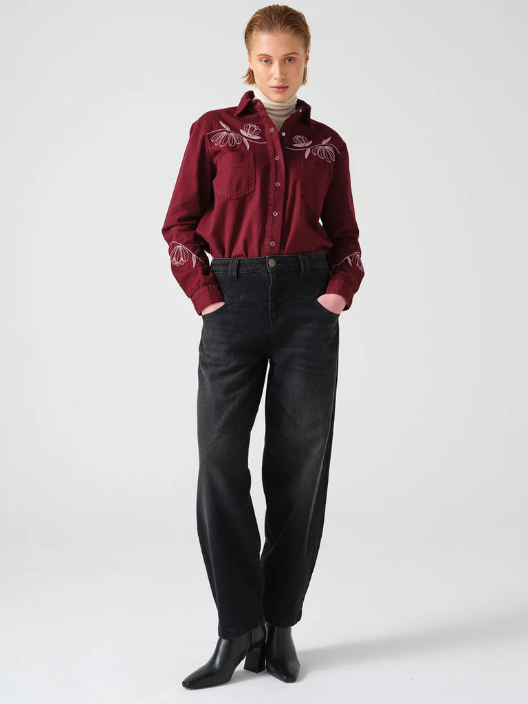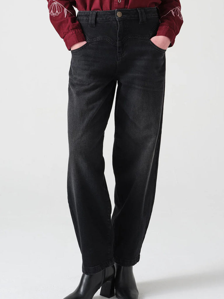Your new everyday jean; a super-high rise, relaxed fit with a cocoon leg.