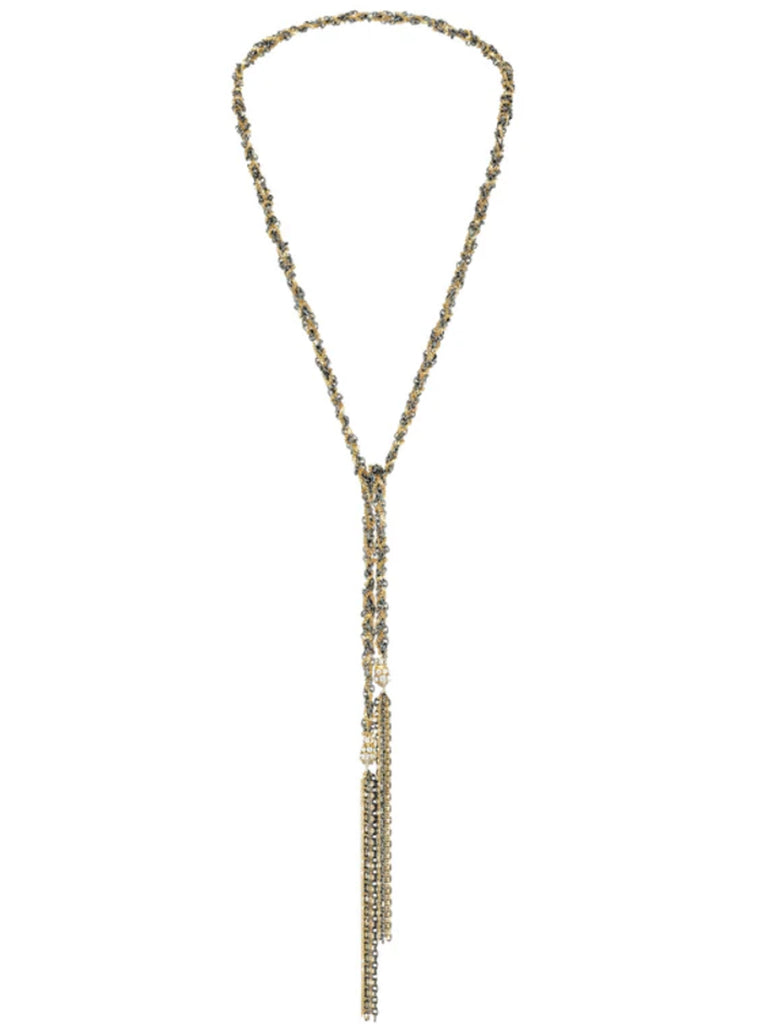An easy-to-wear necklace that can be tied on the front or wrapped around the neck.
