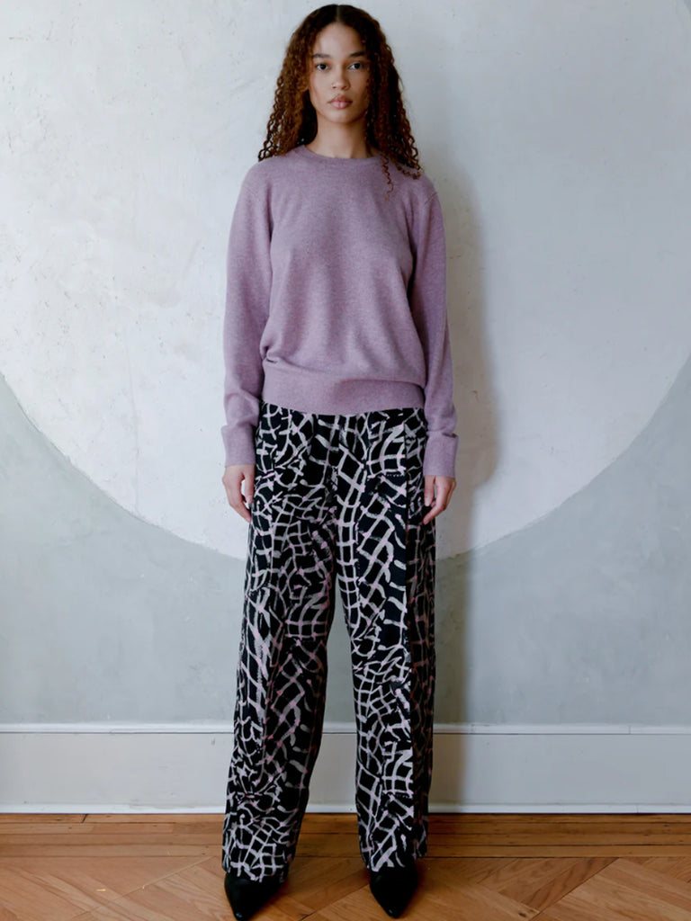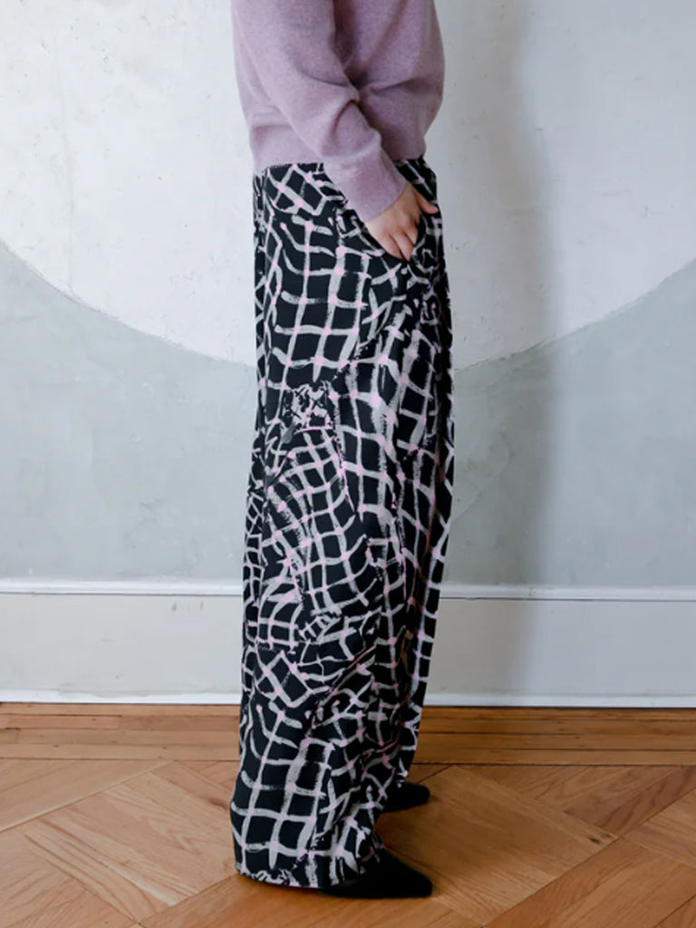 The Pluos Pant is a wide-leg trouser crafted from silky TENCEL™ Luxe in UIM custom hand painted artwork Folds. Designed with front closed-pleat detailing for subtle structure, it drapes fluidly from the hip for a relaxed fit — bringing elevated simplicity to everyday wear.