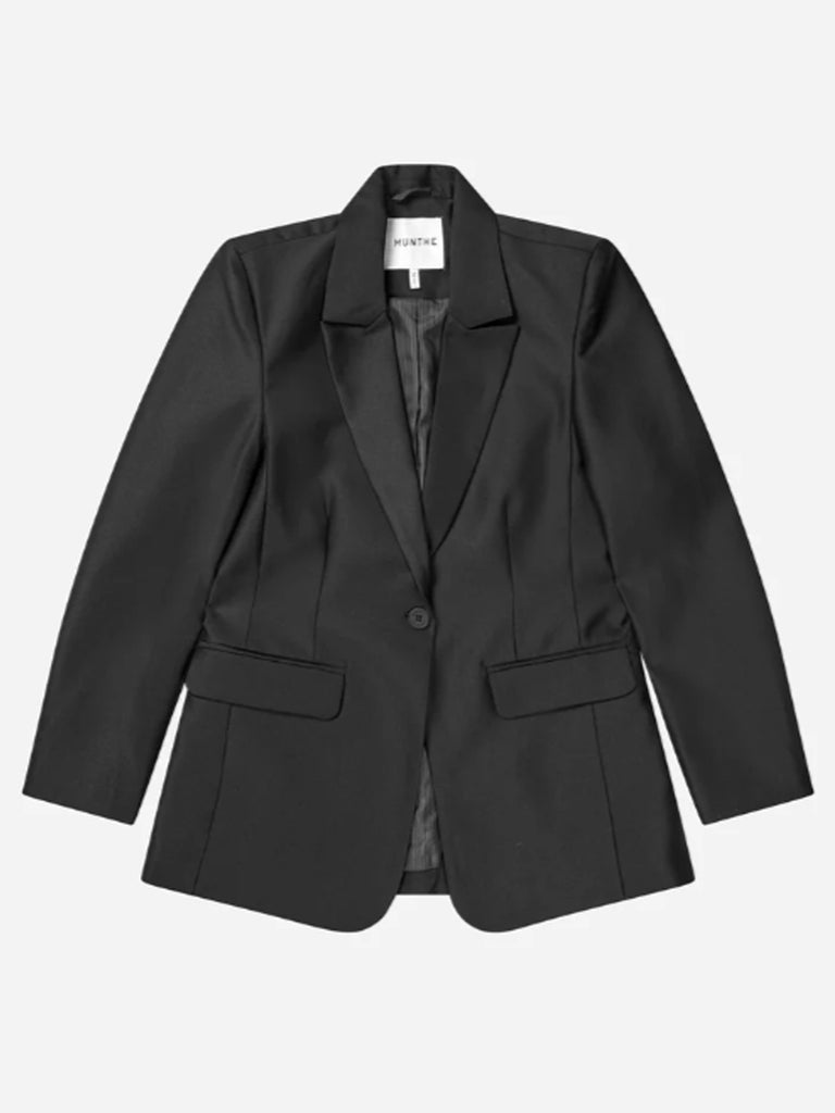 Elegant blazer in beautiful, smooth woven fabric. Designed with a classic lapel, single-button closure, and front flap pockets. The lightly tailored fit creates a sophisticated and timeless look.