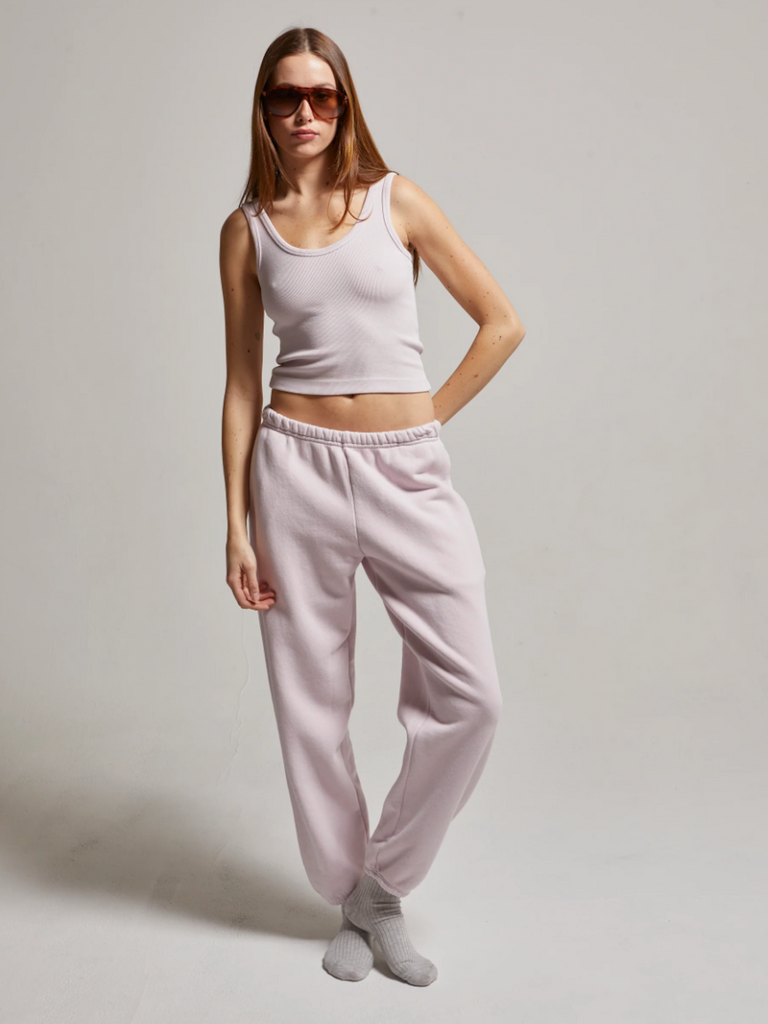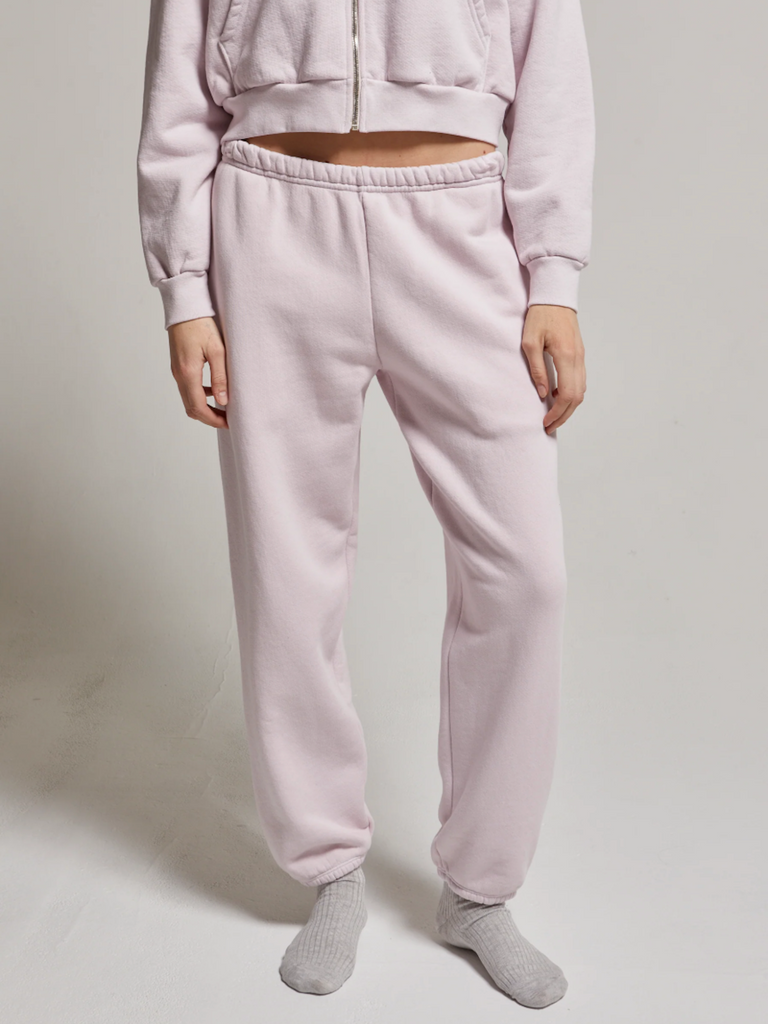 The Sebi Sweatpant has a unisex relaxed fit, featuring a heavy cozy fleece. Side seam pockets and elastic waistband with cord drawstring.