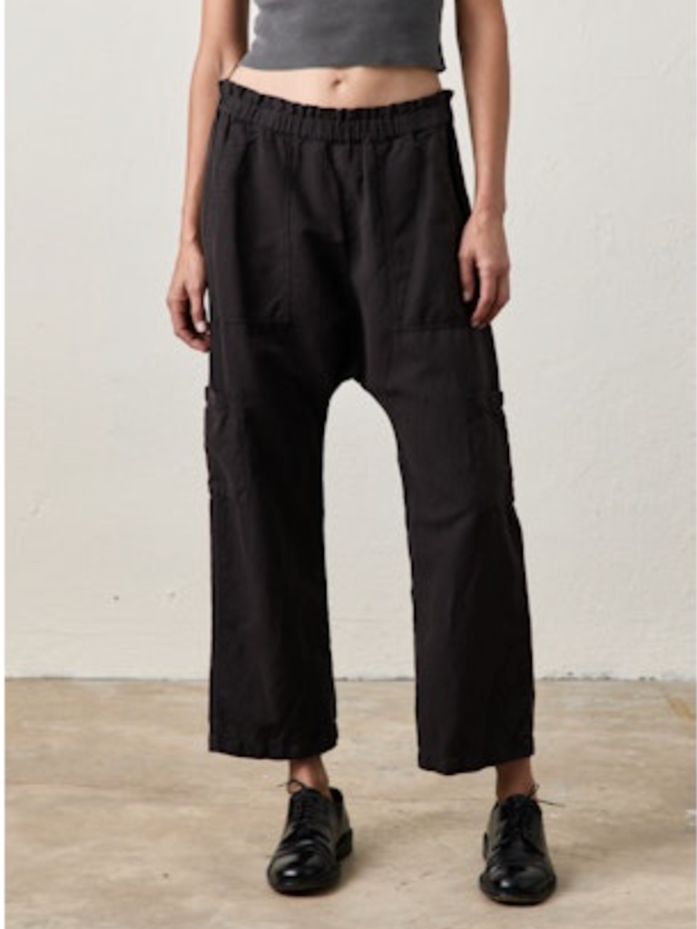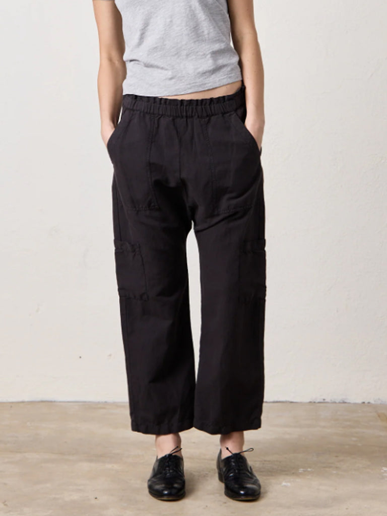 Offering a bestseller in a slightly heavier Linen/Cotton fabric. This is our versatile slouchy paper bag elastic waist pant designed for ultimate flexibility. You can wear them high-waist, mid-waist or low-waist depending on your vibe. With bold patch pockets and sleek side pockets for added function.