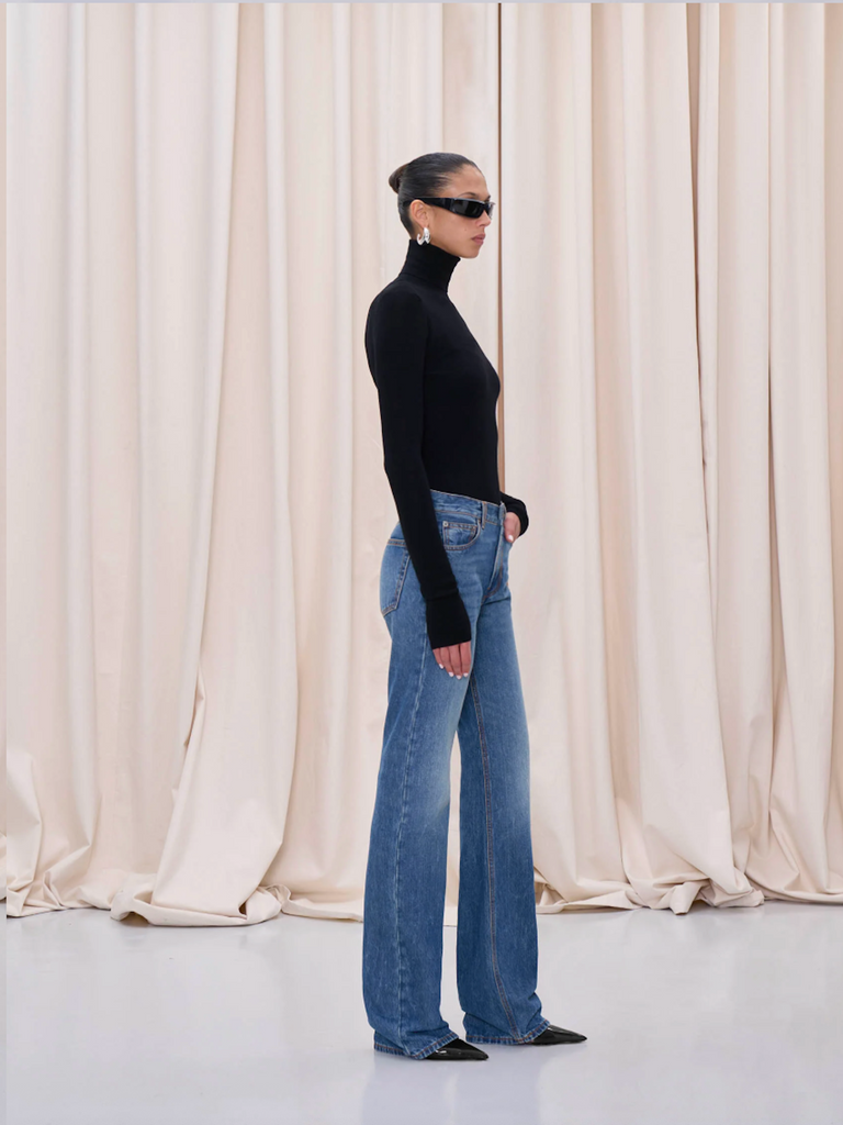 Mid-rise denim, straight leg, relaxed waist. This is a classic, straight leg fit. Note: These run narrow through the hips. We recommend ordering one size up from your regular size. 100% cotton. Made in Italy.