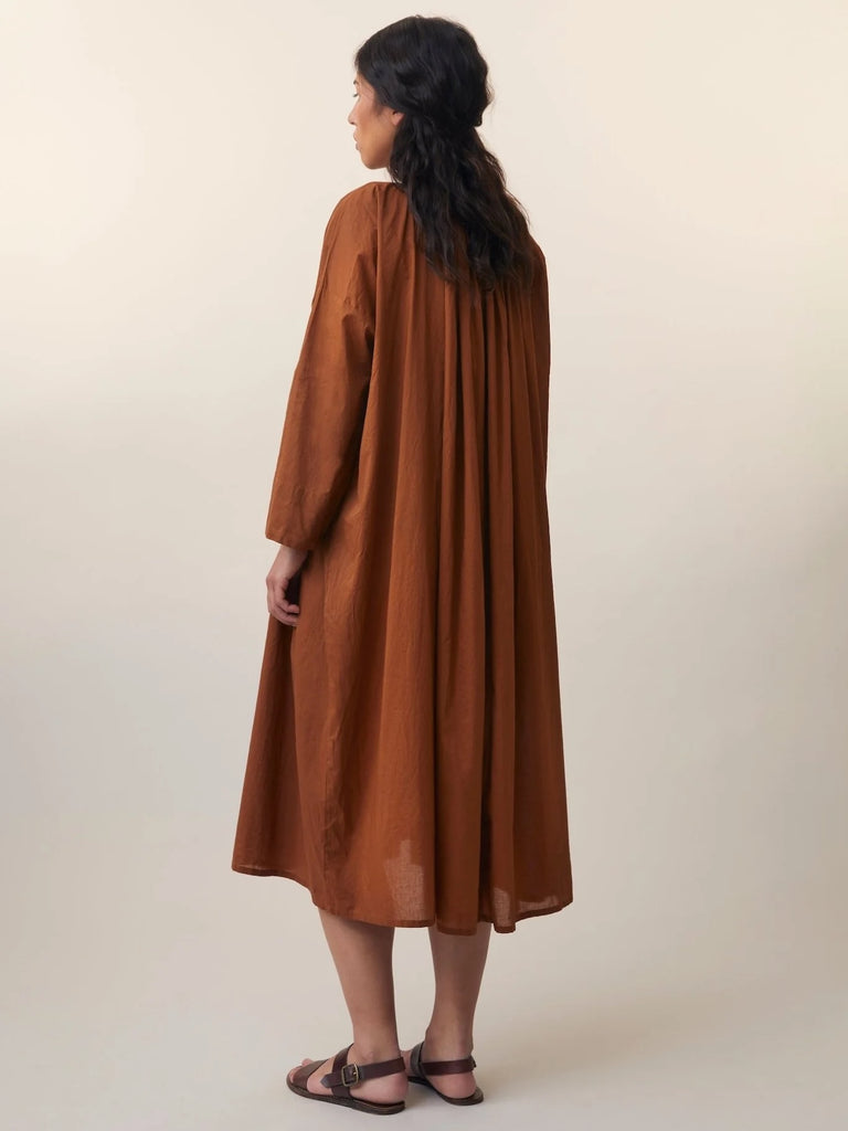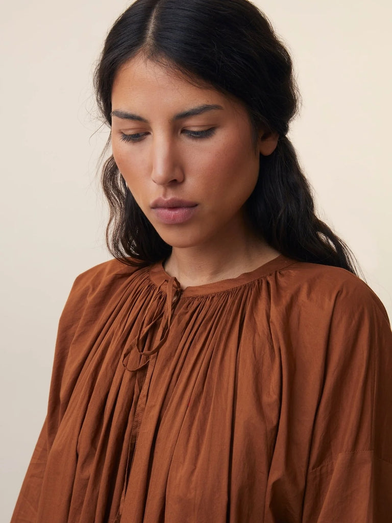 Crafted from soft cotton, the loose-fitting Victoria dress is accented with a V-neck and tonal ties. Gathering is found at the front and back neckline for added volume. 100% cotton. Made In India.