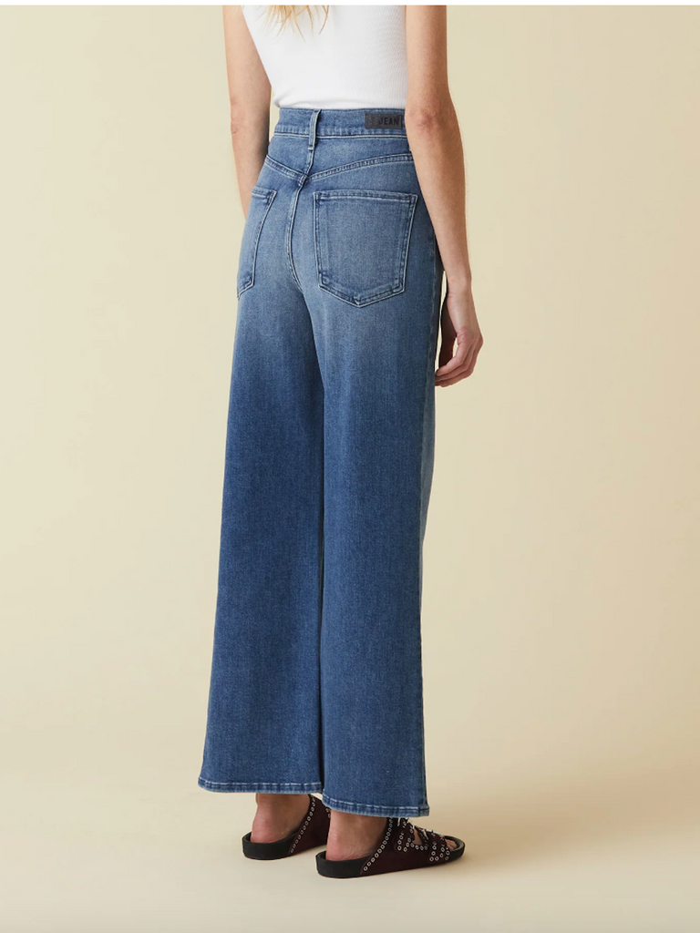 Virginia patch pocket wide-leg ankle jean is cut from the denim blended with the perfect amount of stretch for a comfortable fit. Designed to sit high on the waist, wide-legs and ankle cut. The rich indigo blue wash that makes them endlessly versatile. Made in Los Angeles.