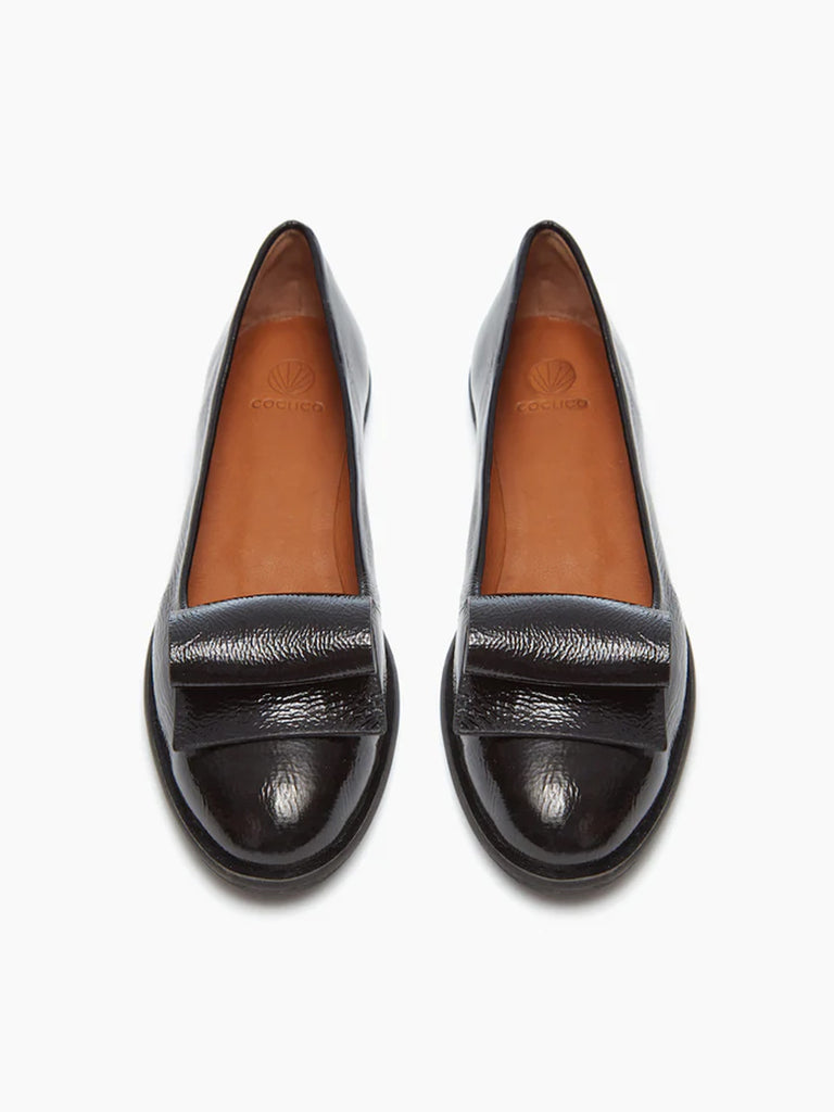 The Yale is a loafer designed for everyday wear in a soft, supple patent leather adorned at the toe with an architectural loop. The construction of this flat is known as sacchetto, a specialty technique that produces a soft, flexible, glove-like fit. The sensation of ease is elevated by the Yale's leather welt and flexible, rubber sole.